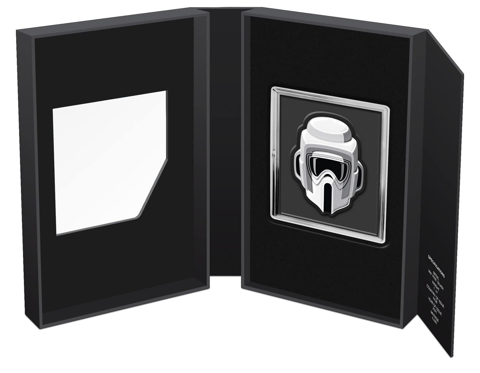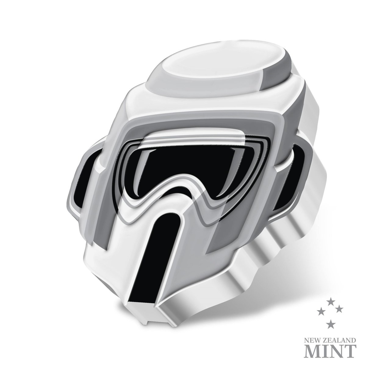 The lighter armoured, more mobile Scout Troopers™ were an Imperial tactical unit introduced in Star Wars: Return of the Jedi™. This 1oz pure silver coin follows the shape of the Scout Trooper’s headgear. The coin has been coloured to replicate the helmet as well as given additional relief for a more 3D feel. This is a legal tender coin and features the Ian Rank-Broadley effigy of Her Majesty Queen Elizabeth II on the obverse.