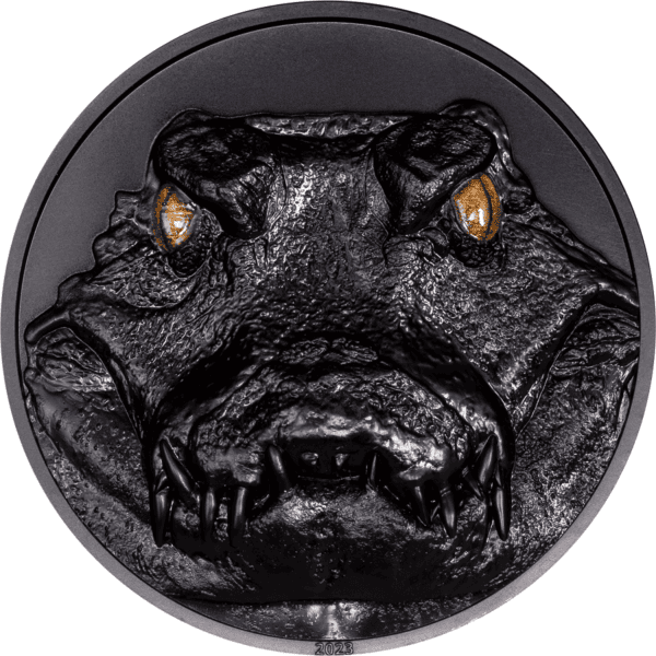 2023 Palau Hunters by Night Caiman 2oz Silver Ultra High Relief Obsidian Black Coin