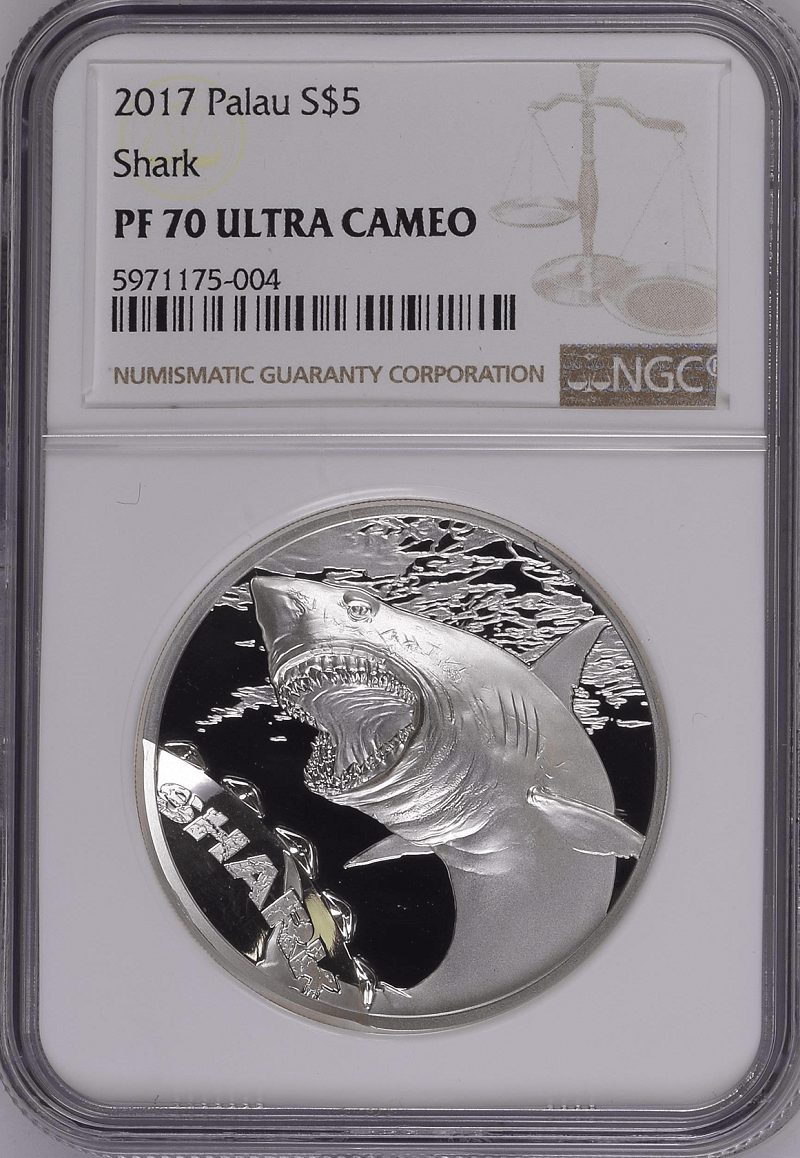 2017 Palau Shark Bite Marks 1oz Silver Proof Coin NGC PF 70 UCAM