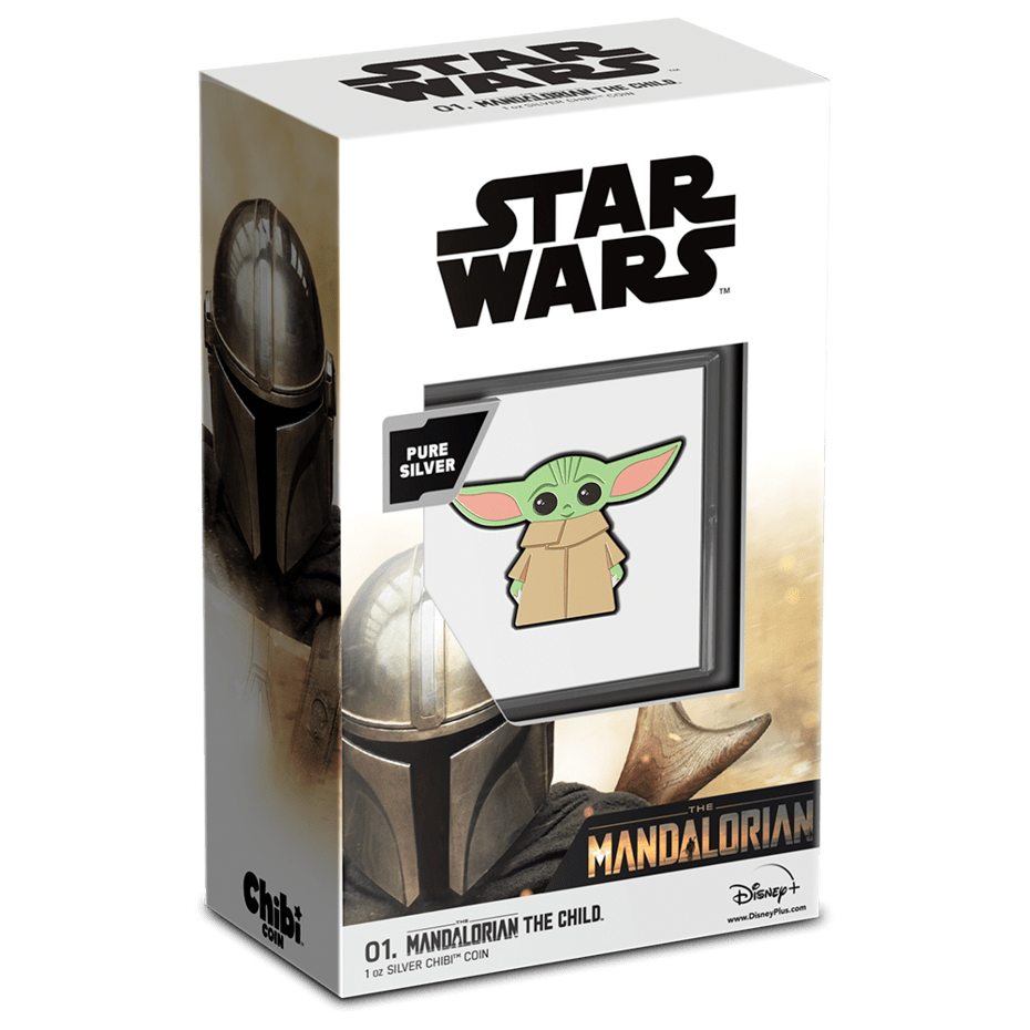 Our Star Wars™ Chibi® Coin Collection has branched out to include a coin for the Child, to celebrate the smash hit Disney+ series The Mandalorian™. Licensed by Lucasfilm Ltd, the coin is made from 1oz of pure silver which has been shaped and coloured to represent the adorable mysterious alien. The Ian Rank Broadley effigy of Her Majesty Queen Elizabeth II is found on the obverse to confirm it as a legal tender coin.