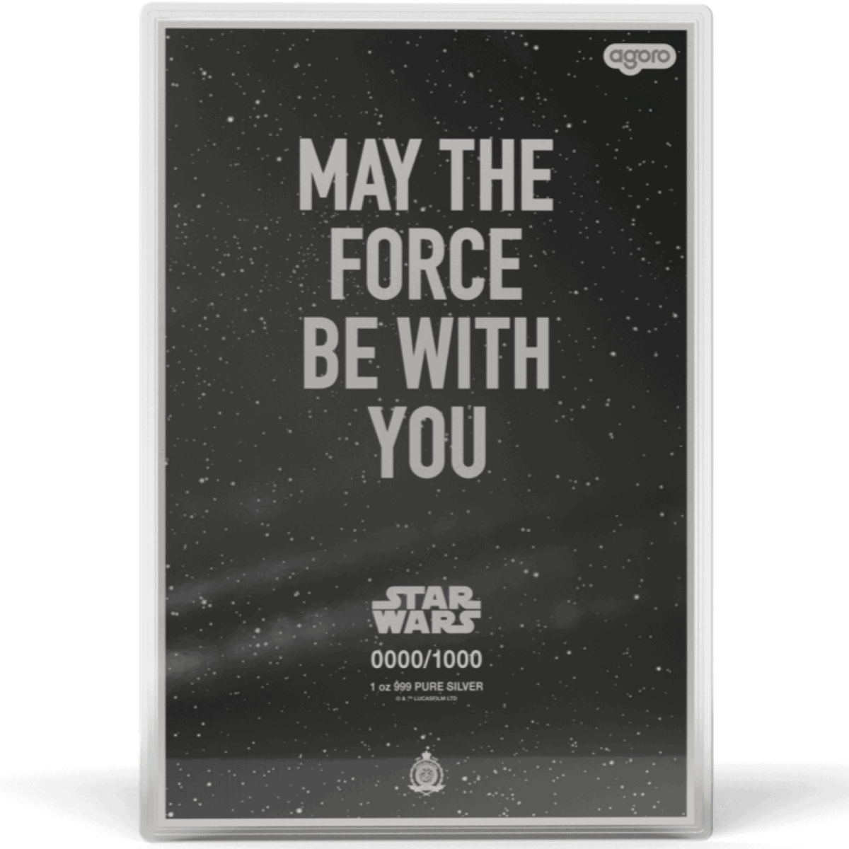 Moreover, the reverse side includes the legendary phrase: “May the Force Be With You.” This detail adds emotional resonance and connects the piece to the heart of the Star Wars saga.
