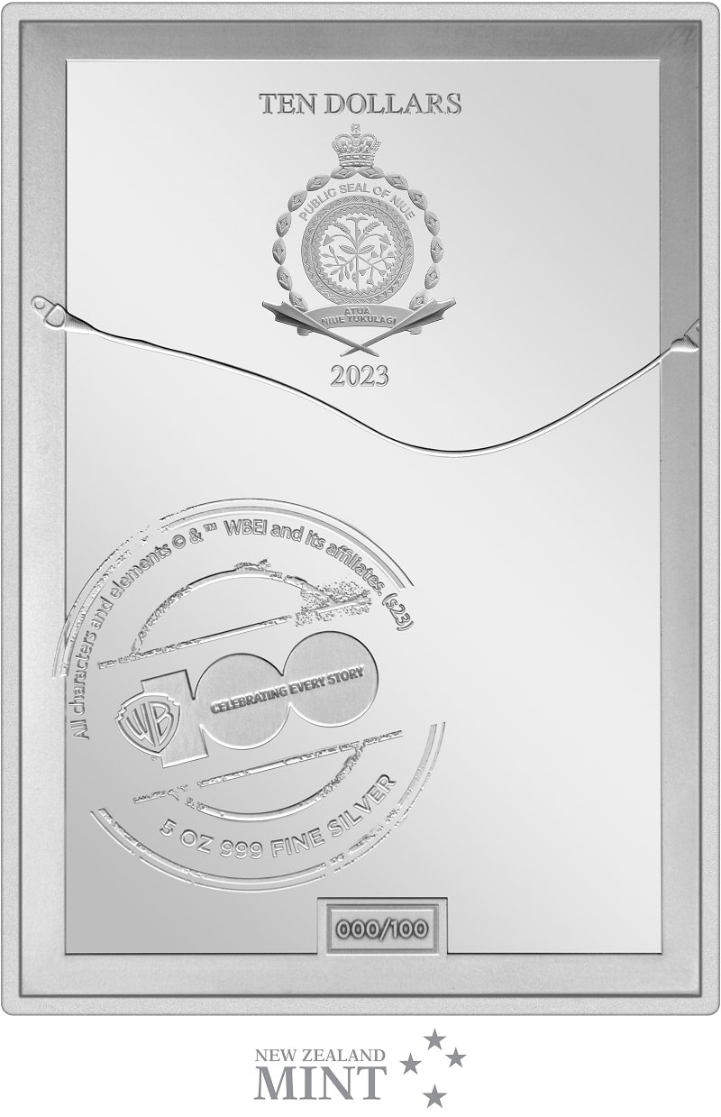 Featuring a striking black coloured background, this show-stopping piece includes stunning frosting to show the film’s notable title song and dance number, and the film name, ‘Singin in the Rain’. The back of the coin is adorned with a mirror finish and features the WB100 logo to further represent the milestone.