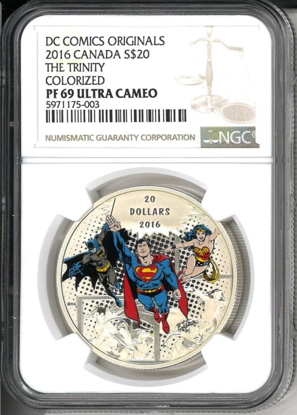 2016 Canada DC Comics The Trinity Colorized 1oz Silver Coin PF 69
