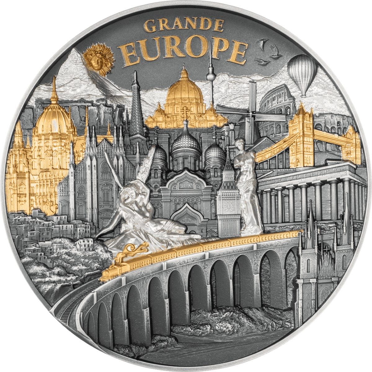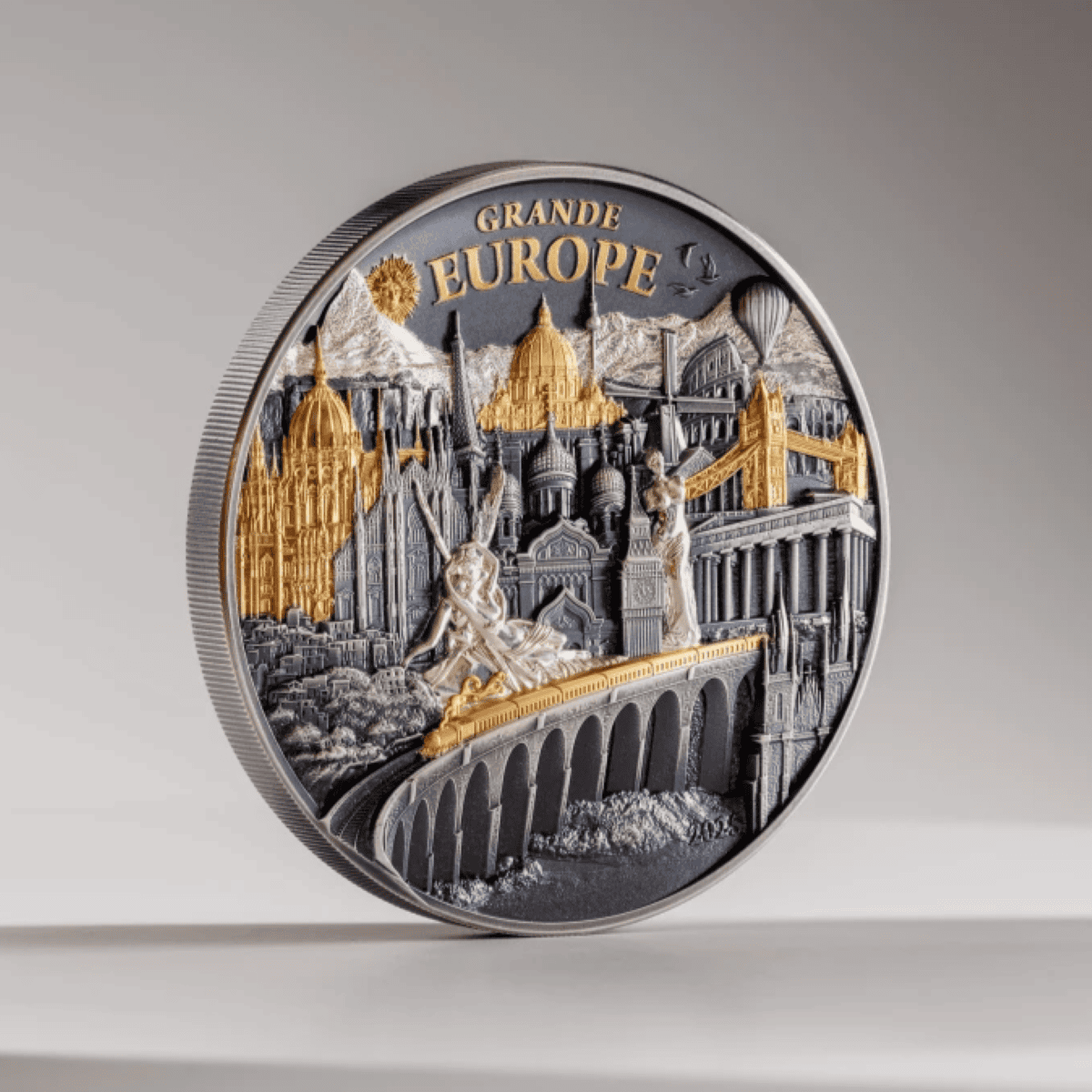 The 2026 Cook Islands Hidden Treasure Grand Europe 3 oz Silver Antiqued Coin invites collectors on a journey across the continent. As part of the Hidden Treasure coin series, this edition blends European history, artistic design, and a playful twist—perfect for those who love storytelling through silver.