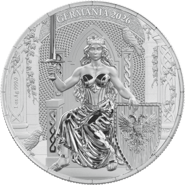 Secure the 2026 Germania 1 oz Silver BU Coin today and add a crowned chapter of this celebrated series to your collection.