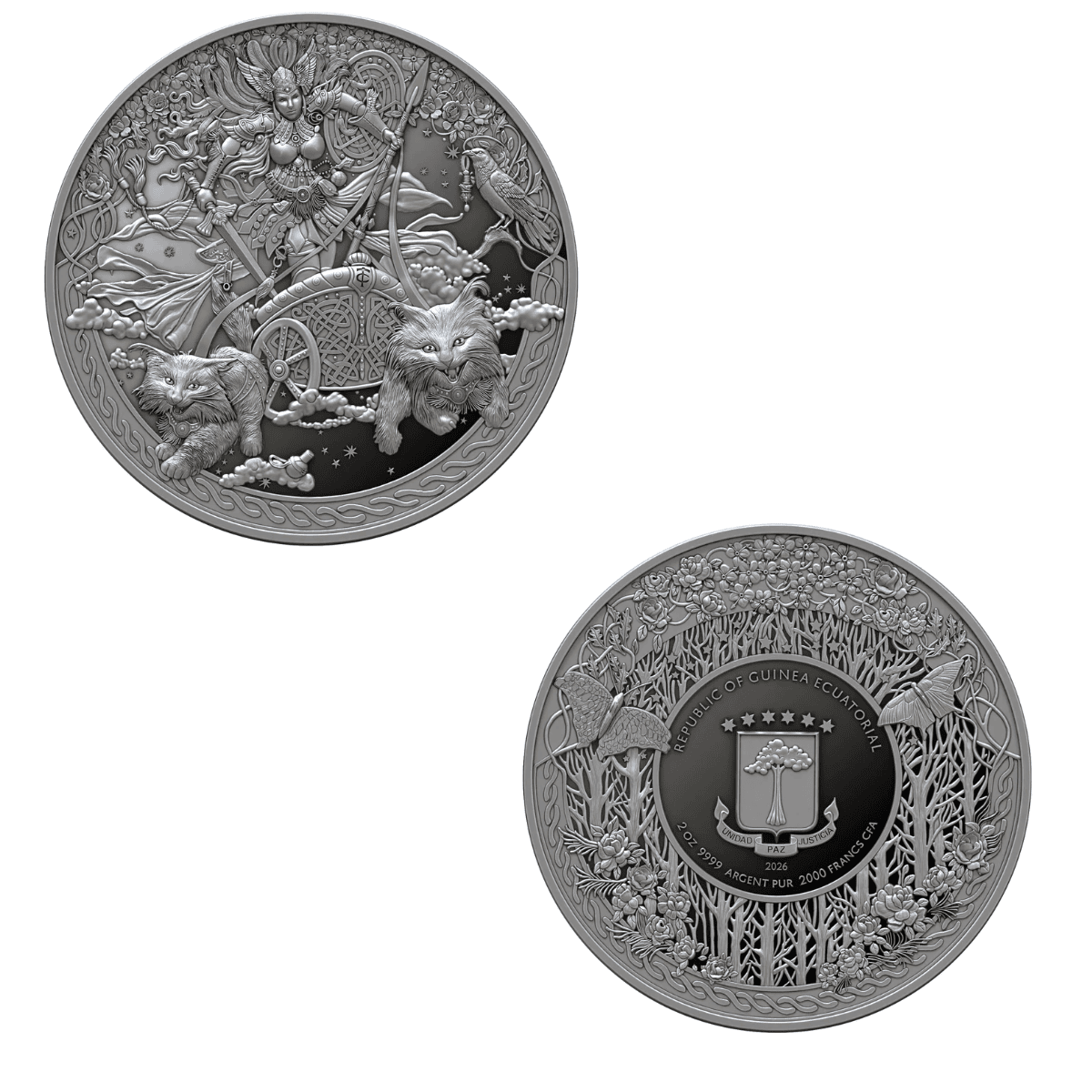 2026 Guinea Norse Mythology Freya 2 oz Silver High Relief Proof Coin