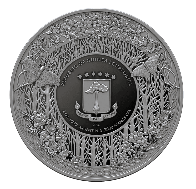 Made from 9999 fine silver, this coin weighs 2 ounces (62.2 grams) and has a 50 mm diameter. It carries a face value of 2000 CFA francs as legal tender from Equatorial Guinea. With only 111 coins minted worldwide, this piece is exceptionally rare. Moreover, the coin’s silver content gives it intrinsic investment value.