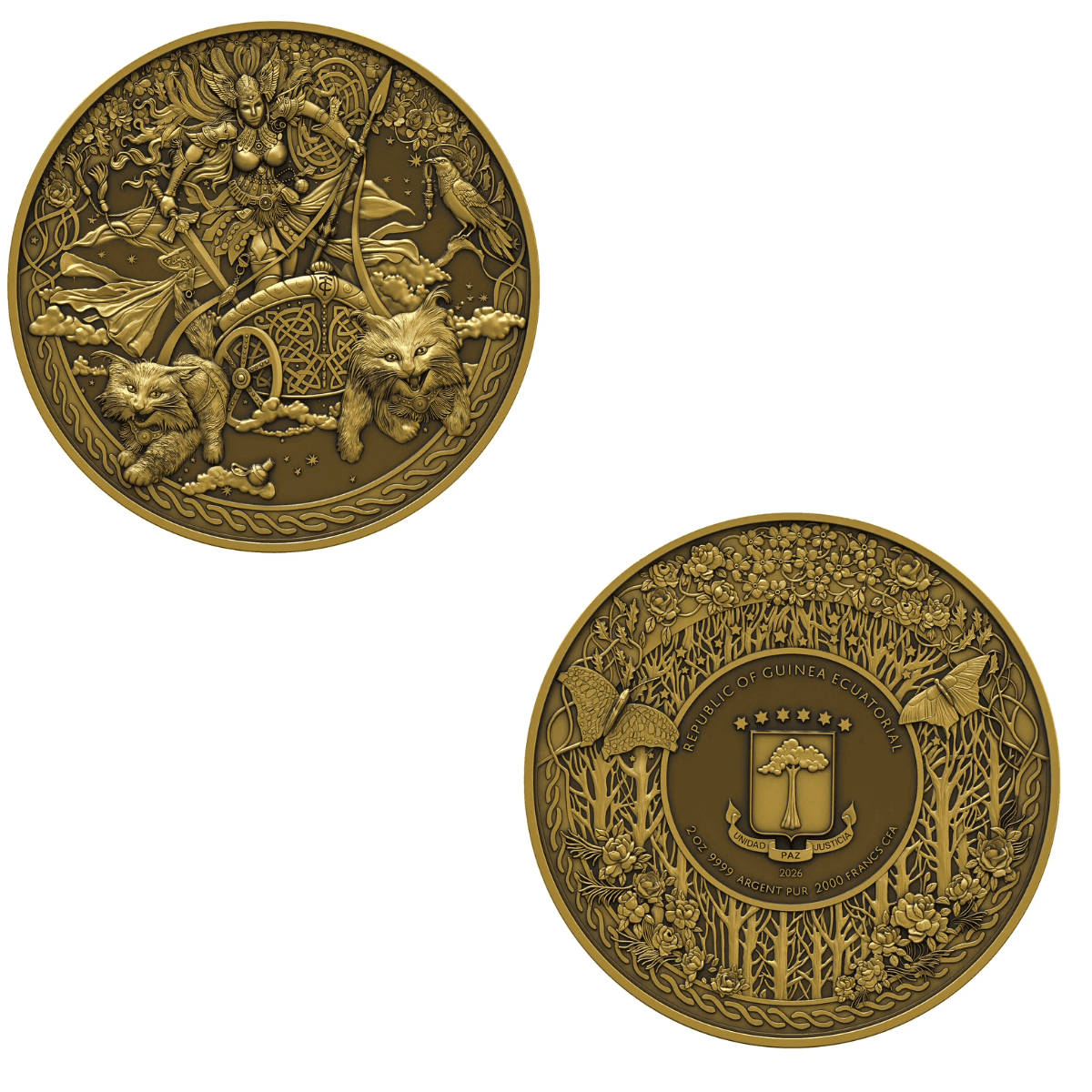 FREYJA 2026 | Equatorial Guinea 2000 FRANCS CFA Silver Coin | 2 oz 9999 Ag Ultra High Relief Antique Gold