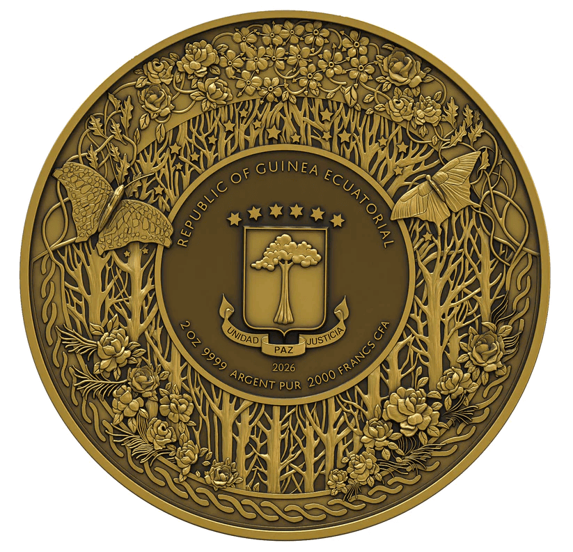 This coin is crafted from 9999 fine silver, weighs 2 ounces (62.2 grams), and measures 50 mm in diameter, giving it a substantial and impressive presence. Furthermore, it carries a face value of 2000 CFA francs as legal tender in Equatorial Guinea. With a limited mintage of only 222 pieces, it combines rarity with investment potential. Its high-quality silver content also ensures long-term intrinsic value.