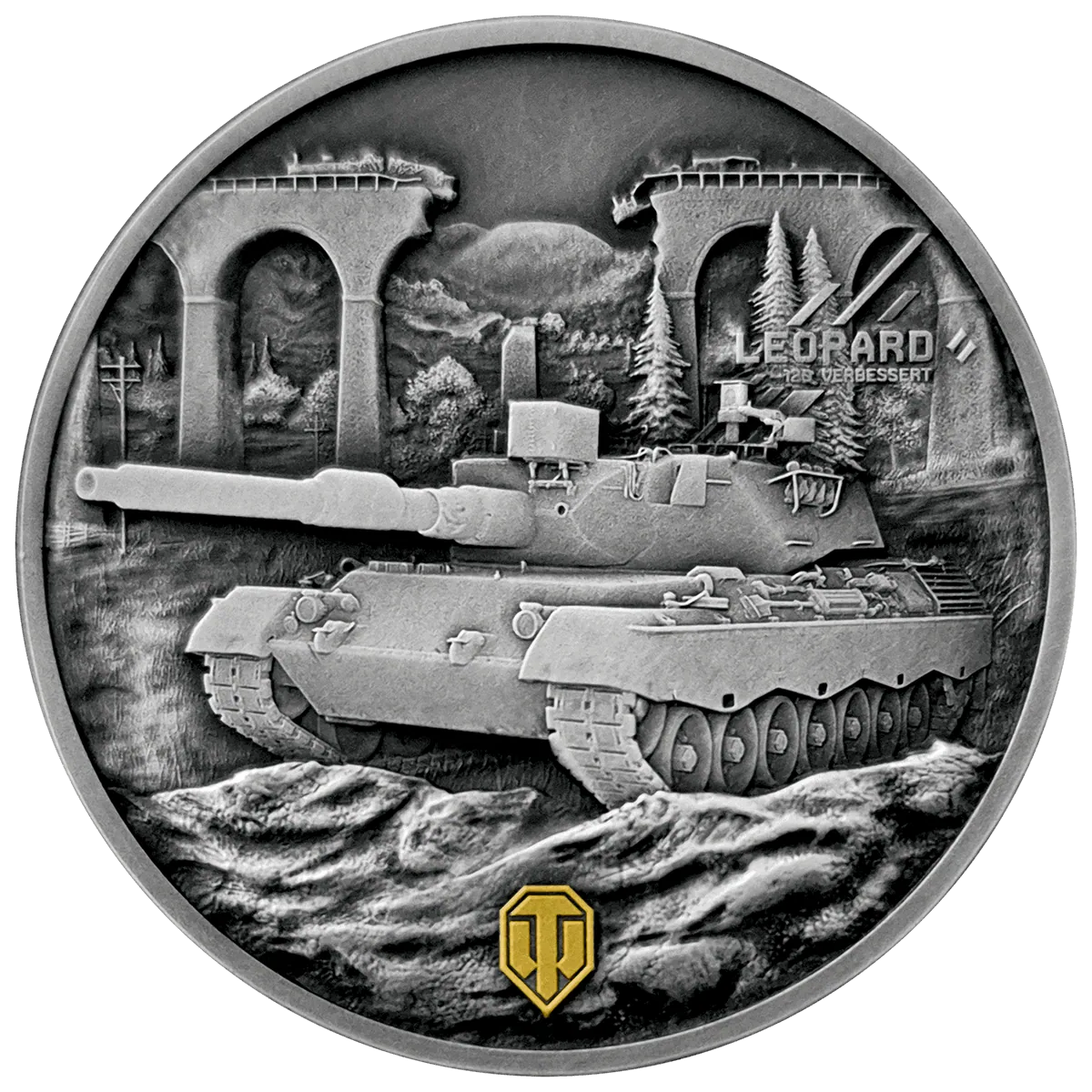 2025 Niue World of Tanks Leopard 120 Verbessert 1 oz Silver Antiqued Microprinted Coin