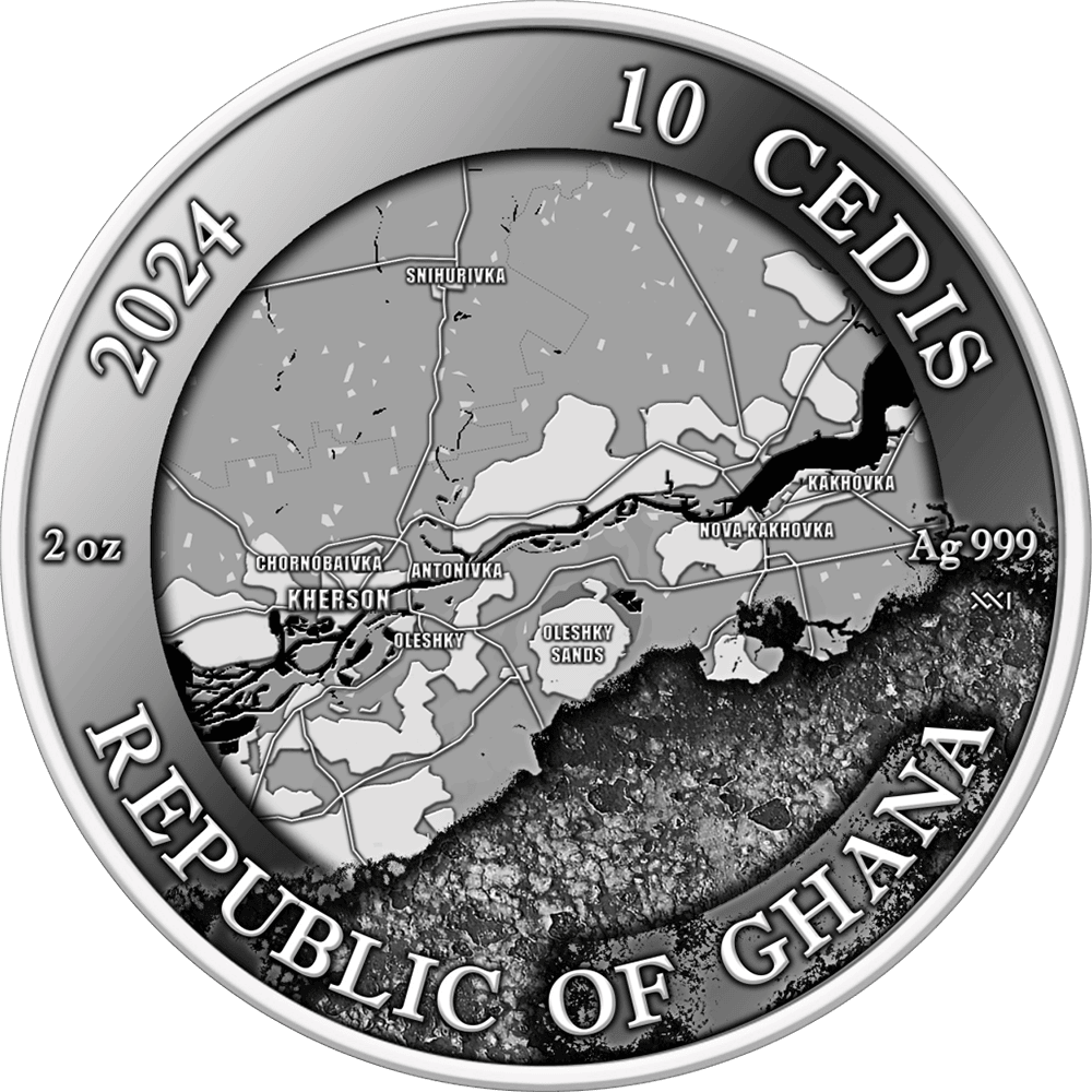 2024 Ghana Ukrainian-Devoted Projects Liberation of Kherson 2 oz Silver High Relief Antiqued Coin