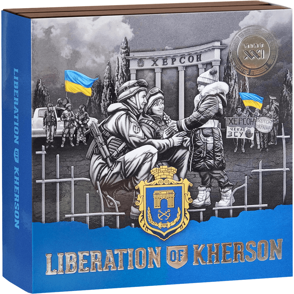 MINT XXI created the ‘Liberation of Kherson’ coin as a powerful symbol of what can be achieved when a nation stands together in the pursuit of its sovereign future. Every cheer, tear, and thankful embrace underscore the victory not just on the battlefield, but also in the hearts of those who had longed for this day.