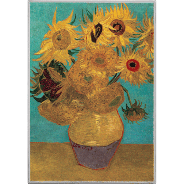 Van Gogh’s radiant yellows and bold brushstrokes turn a simple bouquet into a symbol of vitality and warmth. His expressive style captures emotional depth and transforms everyday beauty into an enduring emblem of hope and creativity. Moreover, the coin’s high-resolution printing enhances every detail—from petal texture to color contrast—preserving the energy of the original painting.