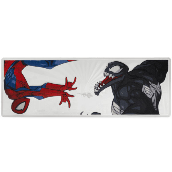 Battles with the alien symbiote Venom have proved nearly lethal to the wall-crawler numerous times. Get tangled in the web of Spider-Man and his adversary with this 3oz 999 pure silver collectible – a must-have for Marvel fans.