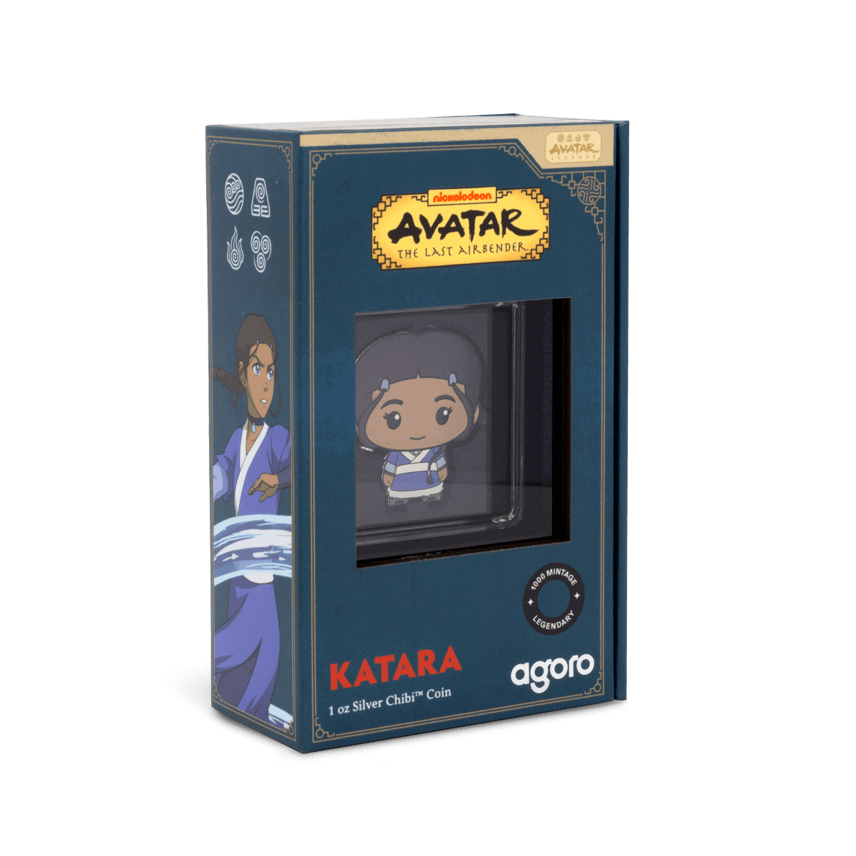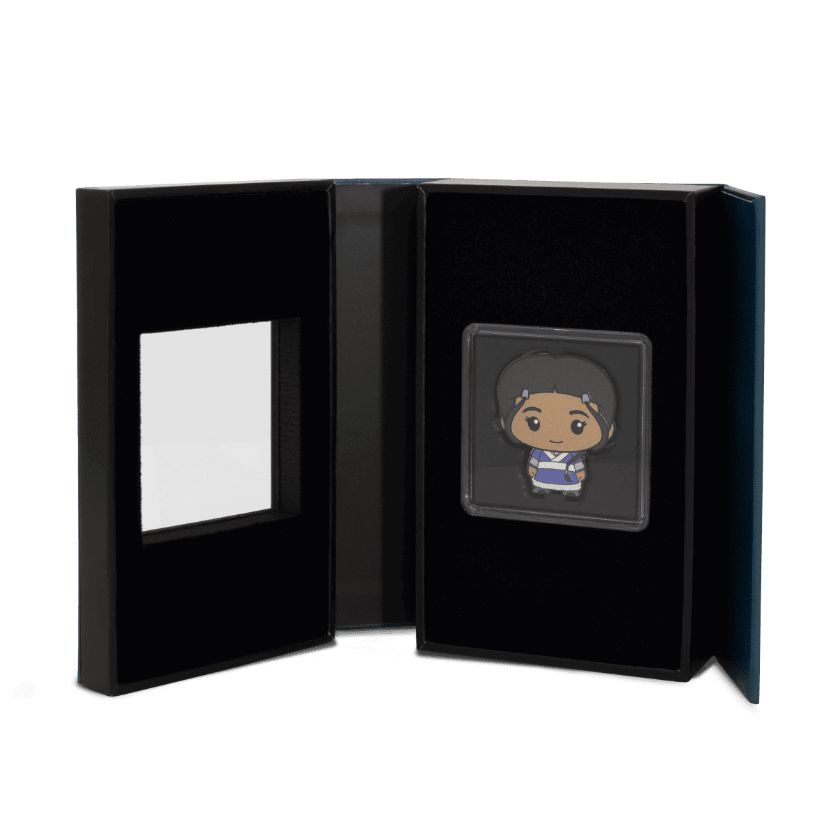 The second release in our official Avatar: The Last Airbender Chibi® Coin series features Katara, Aang’s most trusted ally and a formidable Waterbending master. Struck from 1oz of 999 pure silver, this shaped and colored coin captures her caring spirit and quiet strength in charming Chibi® style.