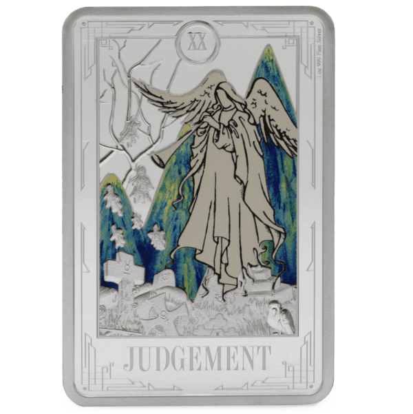 This 1oz 999 pure silver collectible brings the transformative energy of the Judgement Tarot Card to life in exquisite detail. Continue your Tarot Card collection with number twenty in the Major Arcana today.