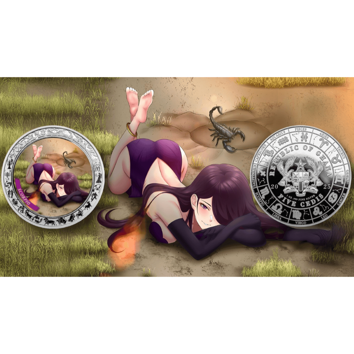 2025 Ghana Zodiac Scorpio Anime 1 oz Silver Colorized Proof Coin