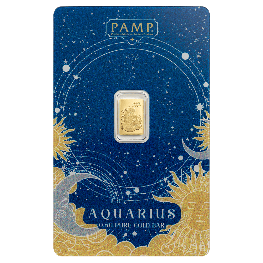 2026 PAMP Suisse Zodiacs Aquarius 1/2 Gram Gold Proof Like Bar in Card