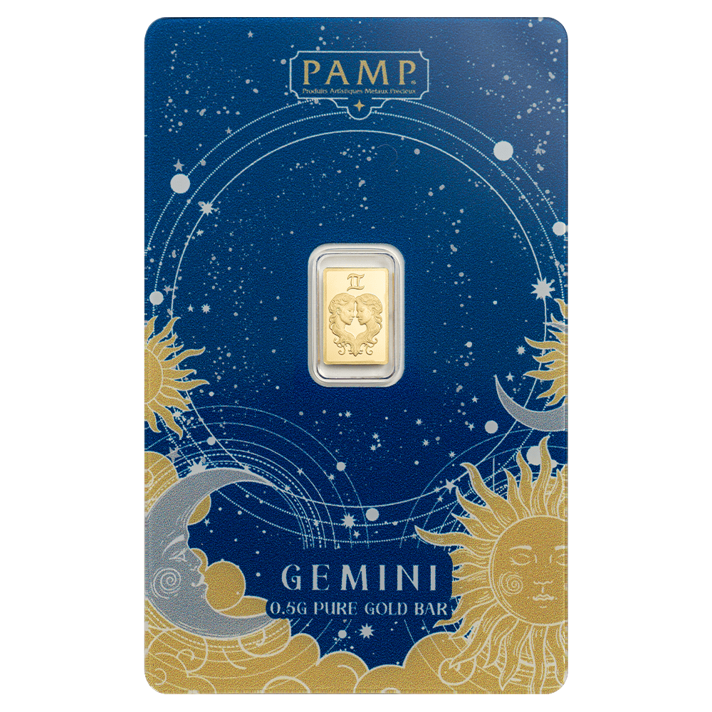 2026 PAMP Suisse Zodiacs Gemini 1/2 Gram Gold Proof Like Bar in Card