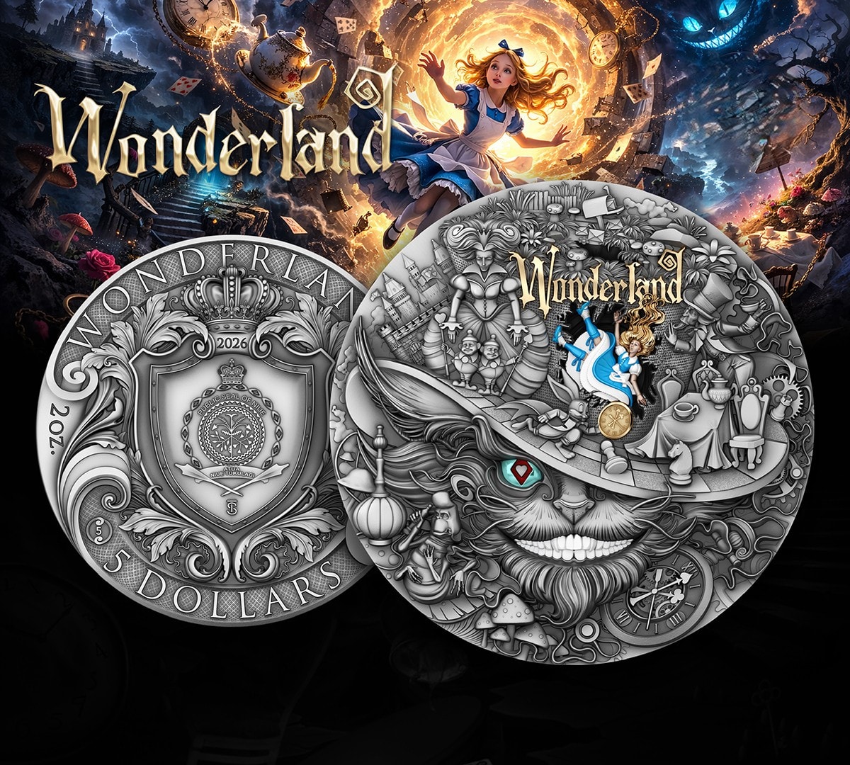 2026 Wonderland 2 oz Silver Antique Finish Coin – World of Stories Series