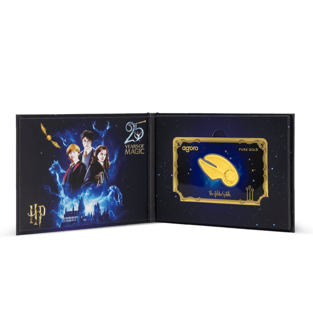One of the most magical pieces in Agoro’s Harry Potter lineup, this fractional gold coin takes the shape of the iconic Golden Snitch. Struck in 0.1g of 999 pure gold, the piece celebrates 25 years of Harry Potter film magic. Moreover, each coin includes a unique number on the Agoro hologram Mark of Authenticity. Additionally, it arrives in Harry Potter-themed packaging with a credit card-style holder. Furthermore, the Public Seal of Niue confirms legal tender status. As an ultra-limited release, Agoro produces just 2,000 worldwide.