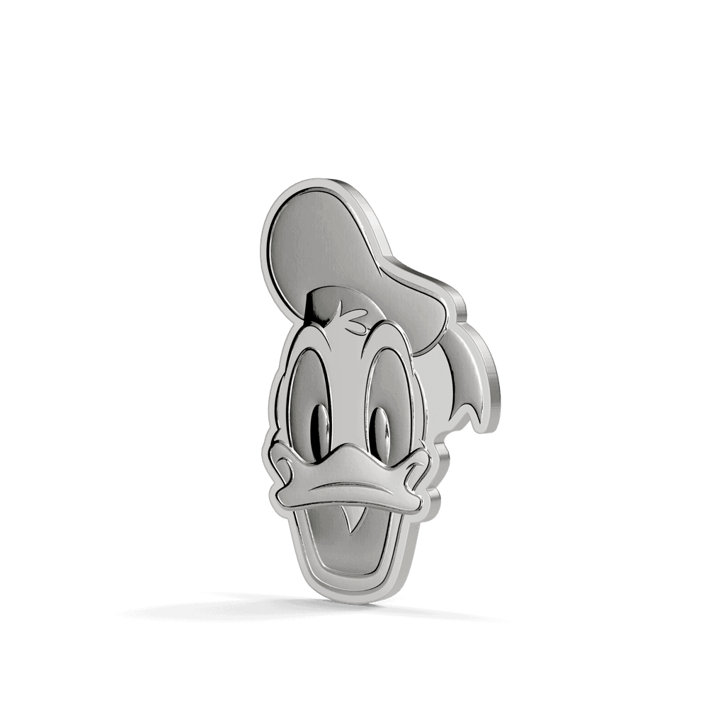 The Iconic Expressions series continues with everyone’s favorite hot-headed sailor, Donald Duck. Notably, Agoro strikes this shaped collectible in 0.5oz of 999 pure silver. Moreover, mirror and frosted finishes bring Donald’s sailor hat, big eyes, and signature expression to life in remarkable detail. Additionally, artisans individually number each piece on the back alongside the raised Disney logo. As the second release in the series, collectors receive a limited edition piece from only 5,000 worldwide.