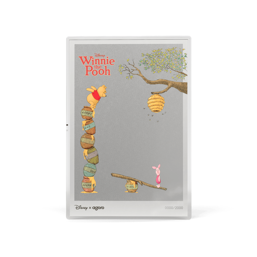 A heartwarming standalone release, Agoro’s Winnie the Pooh Foil captures the beloved bear in a honey-hunting scene. Struck on 5g of 999 pure silver, the piece features vibrant color on a gleaming silver backdrop. Moreover, the packaging showcases themed sketches and a Hundred Acre Wood map, making this a standout display piece. Furthermore, Agoro limits production to 2,000 worldwide. In addition, each foil carries the engraved Disney logo and Mark of Authenticity, with individual numbering for collectors.