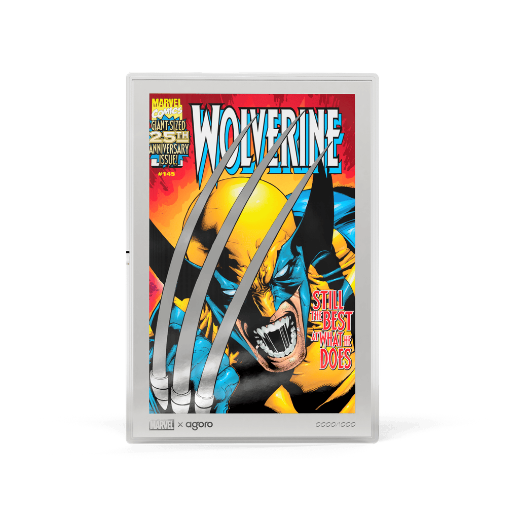 The Wolverine Comic Covers series wraps up in spectacular fashion with Issue #145—the giant-sized 25th anniversary edition. Struck in 1oz of 999 pure silver, this foil features the iconic cover in vibrant color. Additionally, metallic claws gleam in the light for added visual impact. Excitingly, collectors have a 10% chance of finding the chase variant: a stripped-back version where Wolverine and the headline remain in color against a sleek silver background, rated “Legendary” rarity. As the final release in this celebrated series, Agoro produces just 1,000 pieces worldwide. Furthermore, the company individually numbers each coin and confirms it as legal tender.