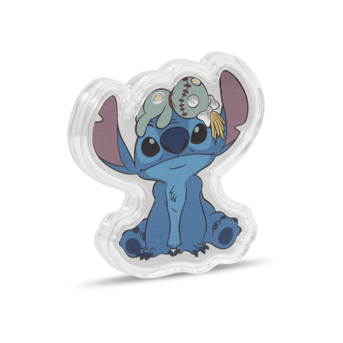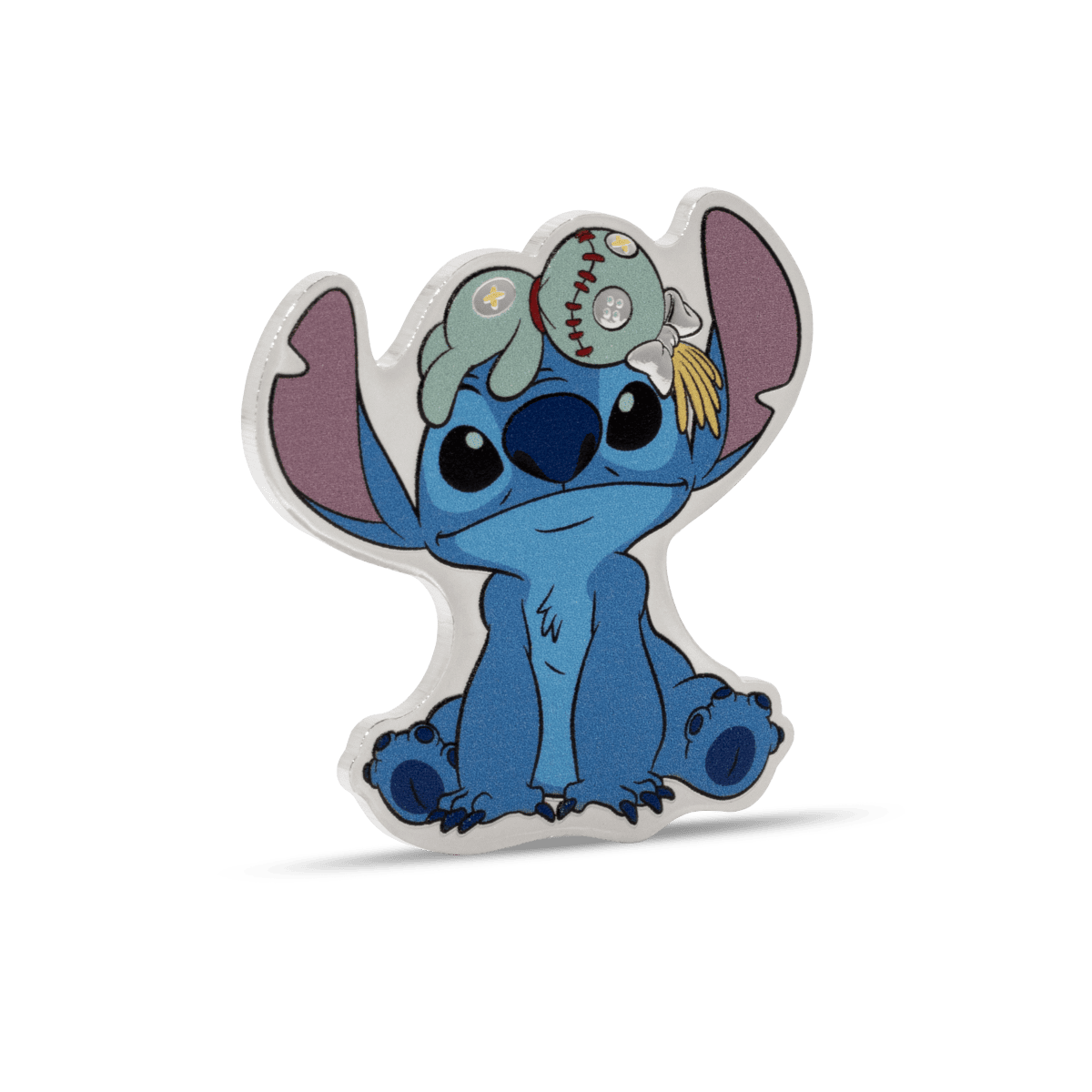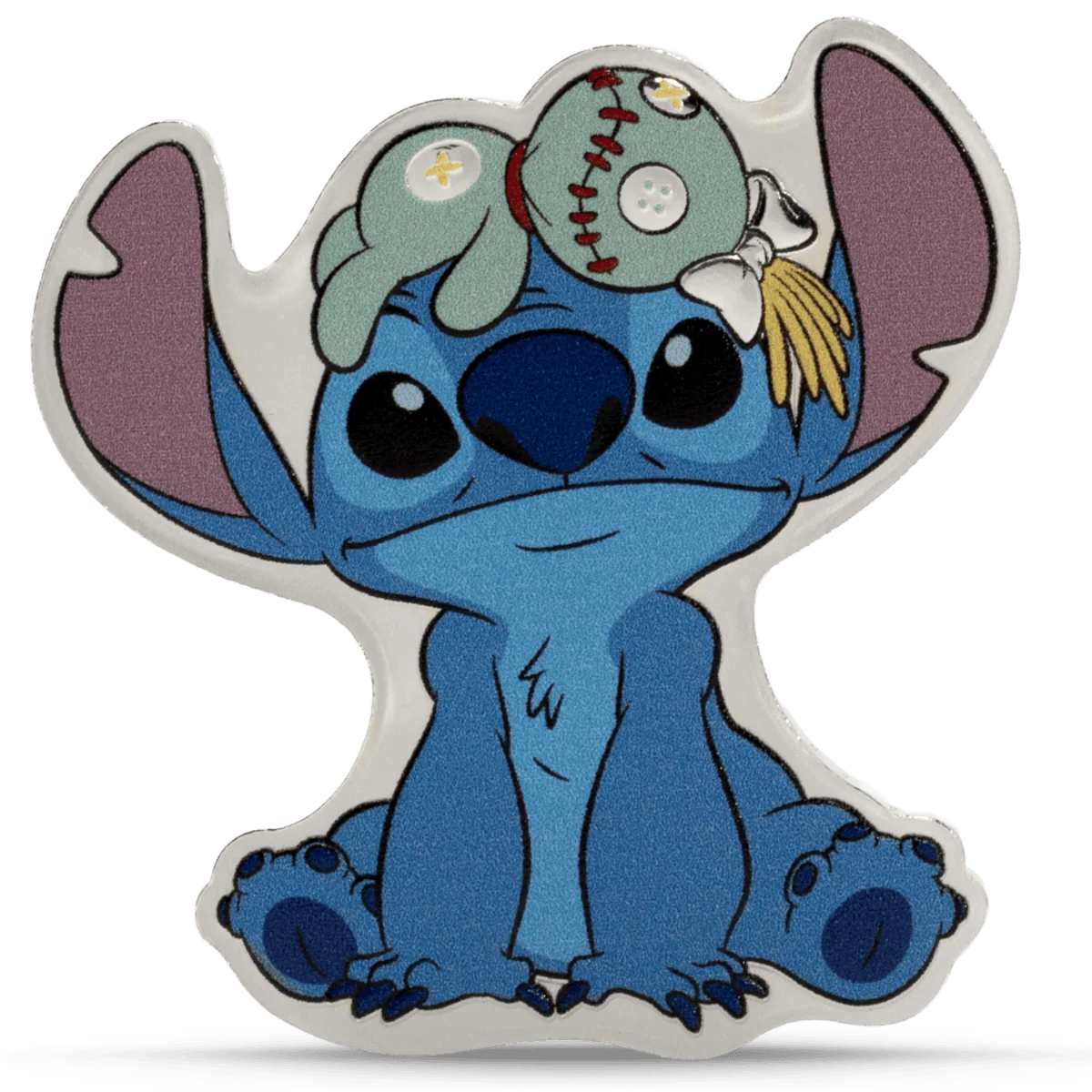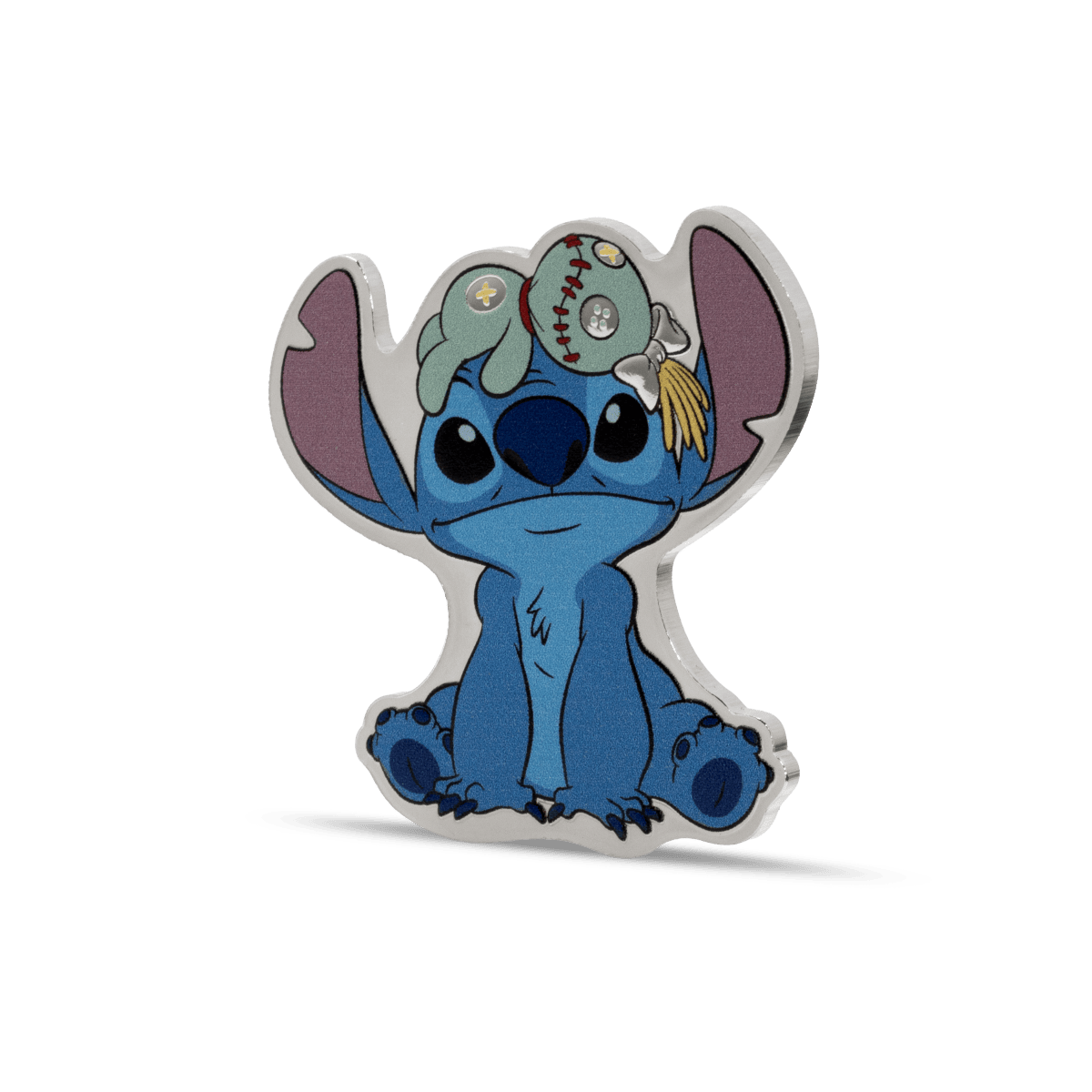 Struck from 1 oz of .999 pure silver, this shaped and colorized coin features Stitch sitting adorably with Scrump perched on his head. The design is both playful and detailed, capturing the spirit of the characters with vibrant color and a proof-quality finish.