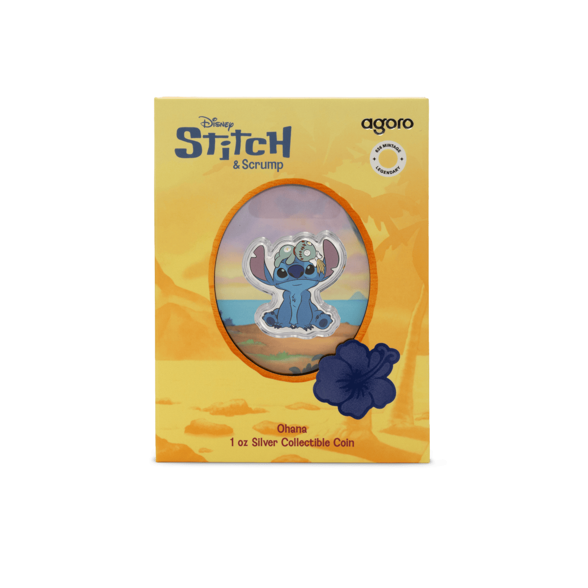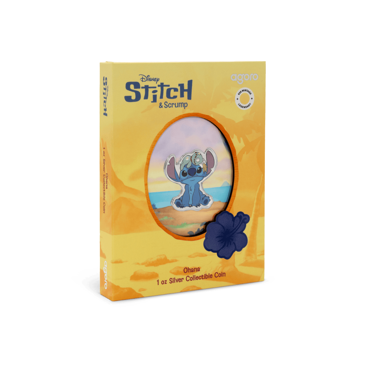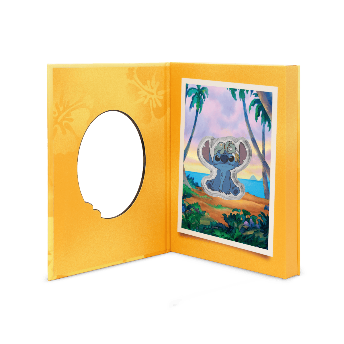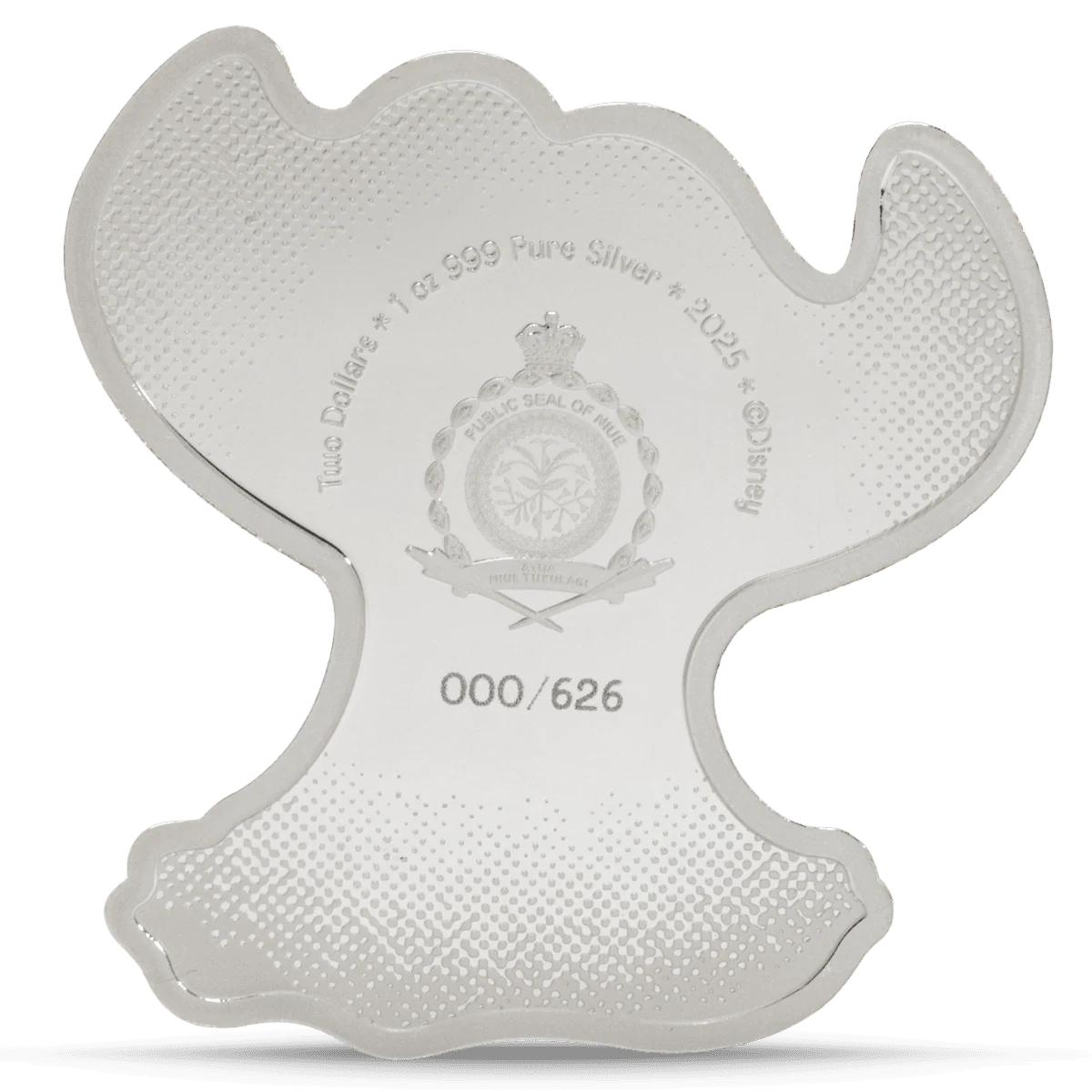 Struck from 1 oz of .999 pure silver, this shaped and colorized coin features Stitch sitting adorably with Scrump perched on his head. The design is both playful and detailed, capturing the spirit of the characters with vibrant color and a proof-quality finish.