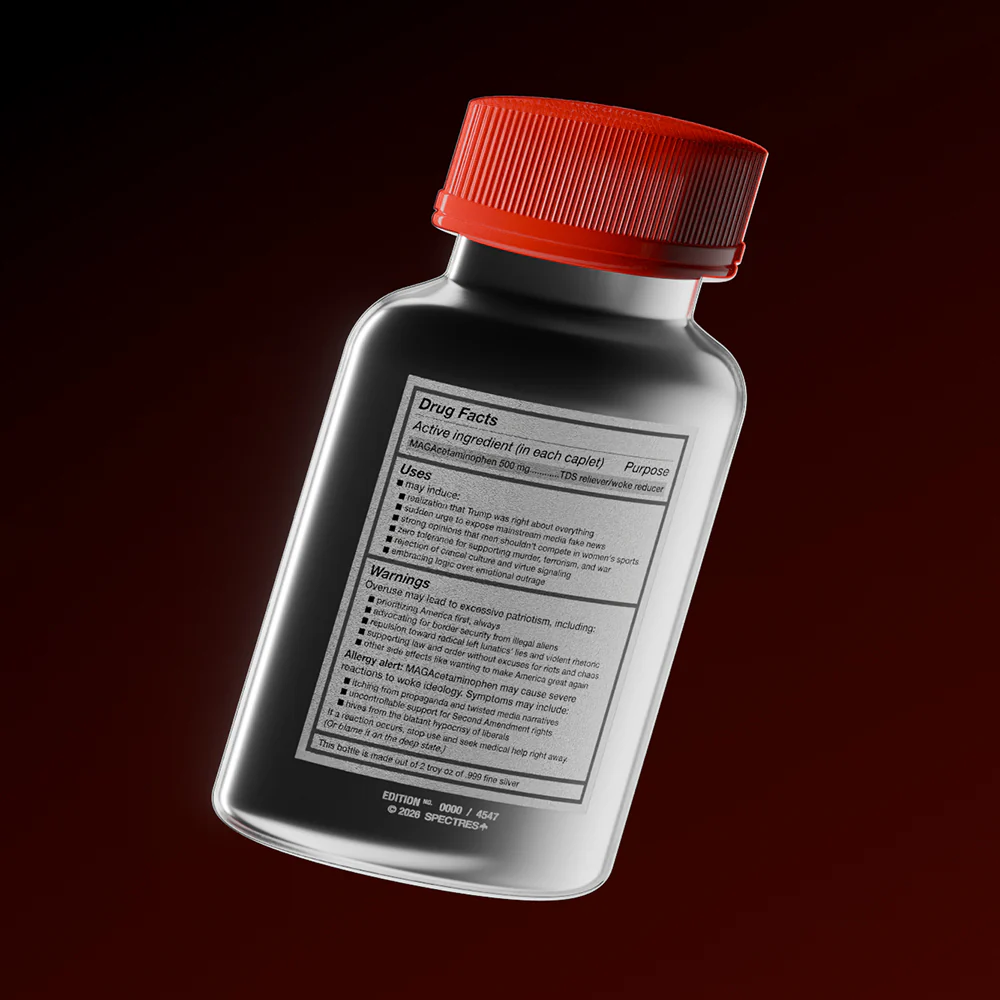 Minted by Spectres for the 2026 collectible season, Trumpenol joins the popular MAGA Series—alongside favorites like the MAGA Hat and Bulletproof Vest coins. Each release celebrates freedom, humor, and the American spirit, bringing together artistry and message.