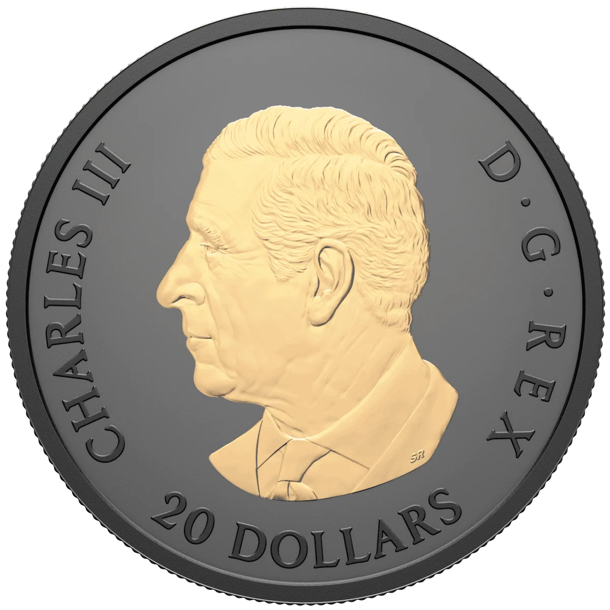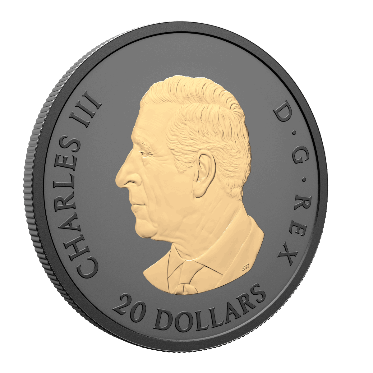 This collectible is struck in 1 troy ounce (31.39 grams) of 99.99% pure silver, crafted to the Mint’s renowned standards. Measuring 38 mm in diameter with a finely serrated edge, it carries a face value of $20 CAD. The reverse, designed by artist Donna Kriekle, features the gold-plated maple leaf set against a rhodium-plated matte proof background, allowing every vein and contour to stand out in remarkable detail. On the obverse, artist Steven Rosati’s effigy receives the same gold treatment, ensuring harmony across both sides.