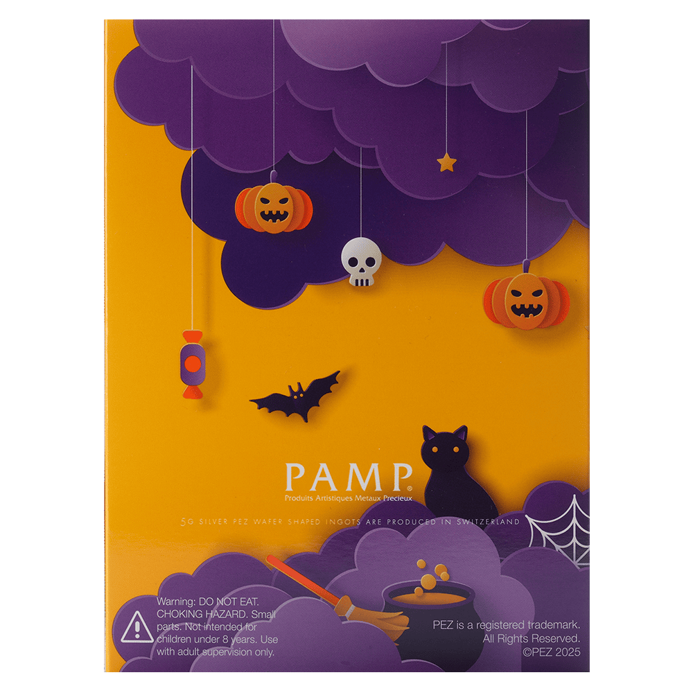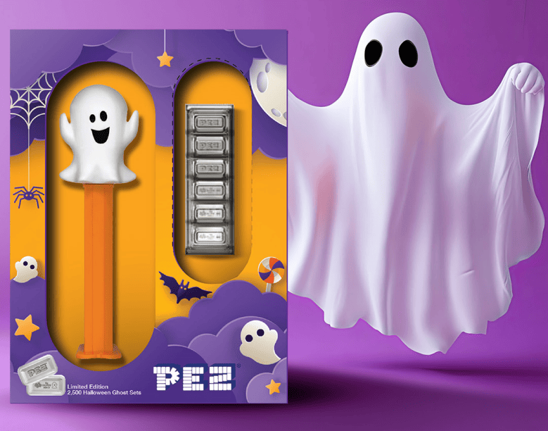 Celebrate Halloween in style with the 2025 PAMP Halloween Ghost PEZ 30 Gram Silver Wafers and Dispenser Set. This delightful collectible brings together childhood nostalgia and fine silver artistry. Inspired by classic PEZ® candies, it’s a charming mix of fun, craftsmanship, and precious metal value.