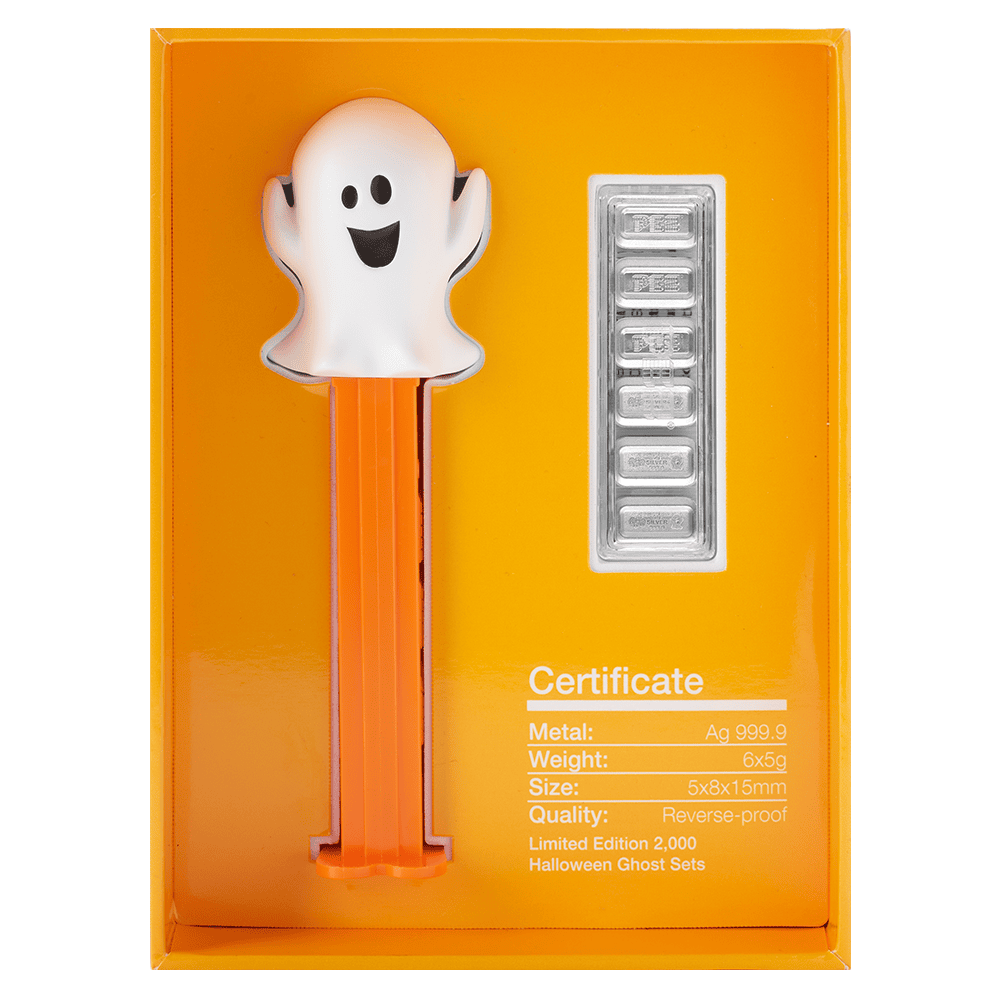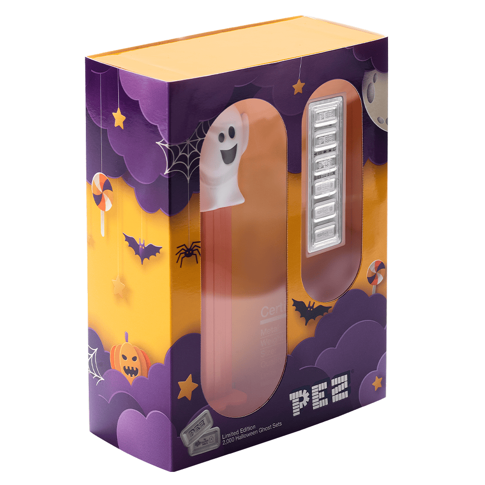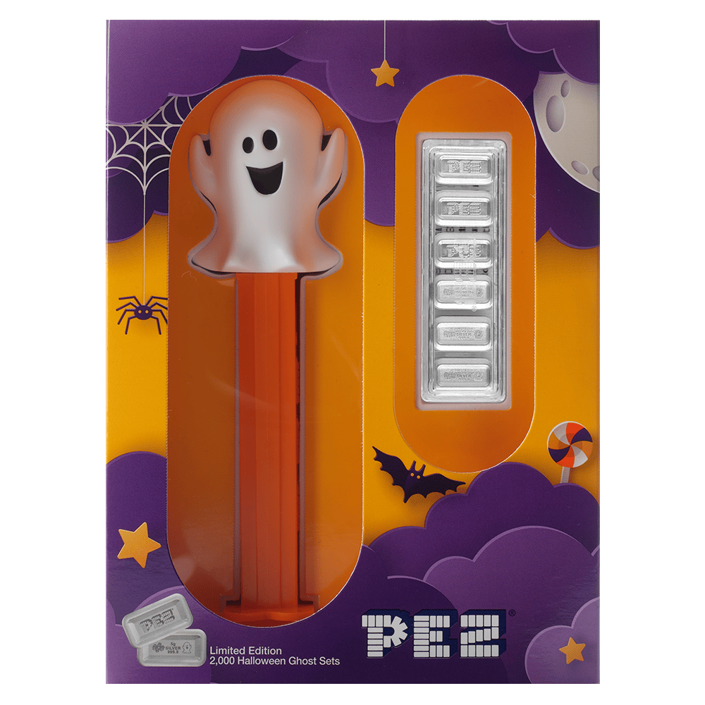 Each set includes six 5-gram wafers, all minted from .9999 fine silver. The wafers perfectly mirror the look of real PEZ® candies but feature a friendly ghost design for a seasonal touch. The proof-like finish gives every piece a brilliant shine, while soft frosted accents highlight the playful details. Moreover, the included authentic working dispenser completes the nostalgic experience, blending novelty with quality.