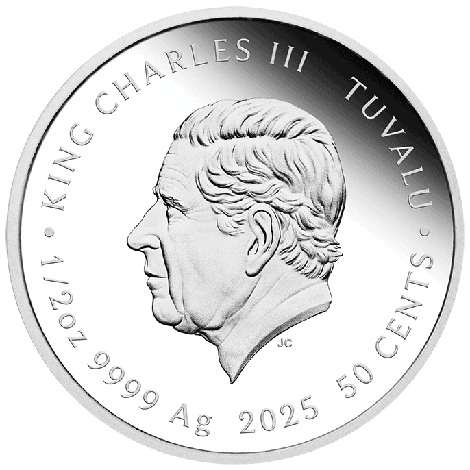 With a worldwide mintage of only 2,500 coins, this release is as scarce as it is eye-catching. Measuring 32.60 mm in diameter and 2.90 mm thick, it carries a proof finish that highlights every design detail. Weighing 15.553 grams, it delivers both artistic appeal and the assurance of .9999 fine silver. Designed by Sean Rogers (reverse) and Jody Clark (obverse), the coin blends licensed artistry with world-class minting.
