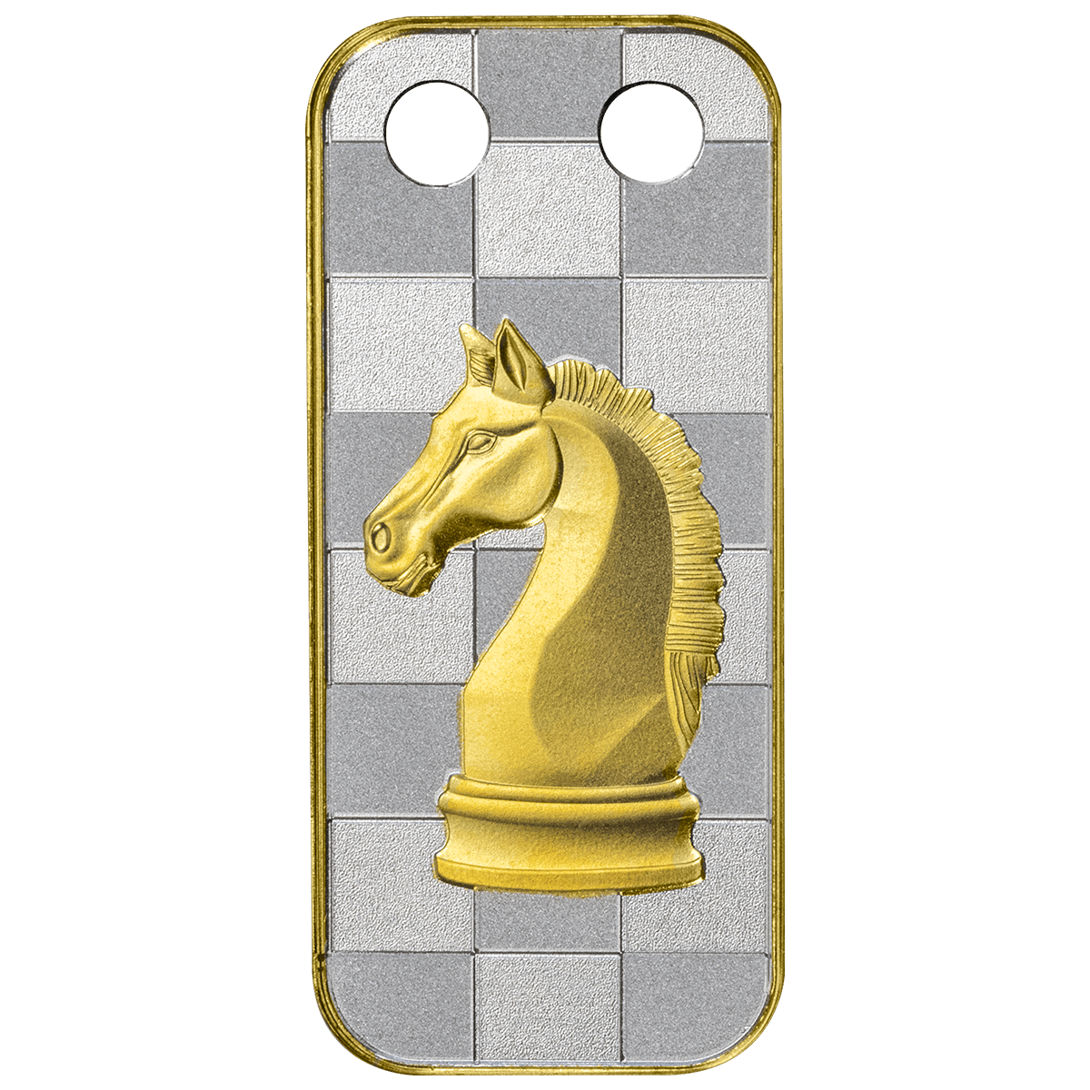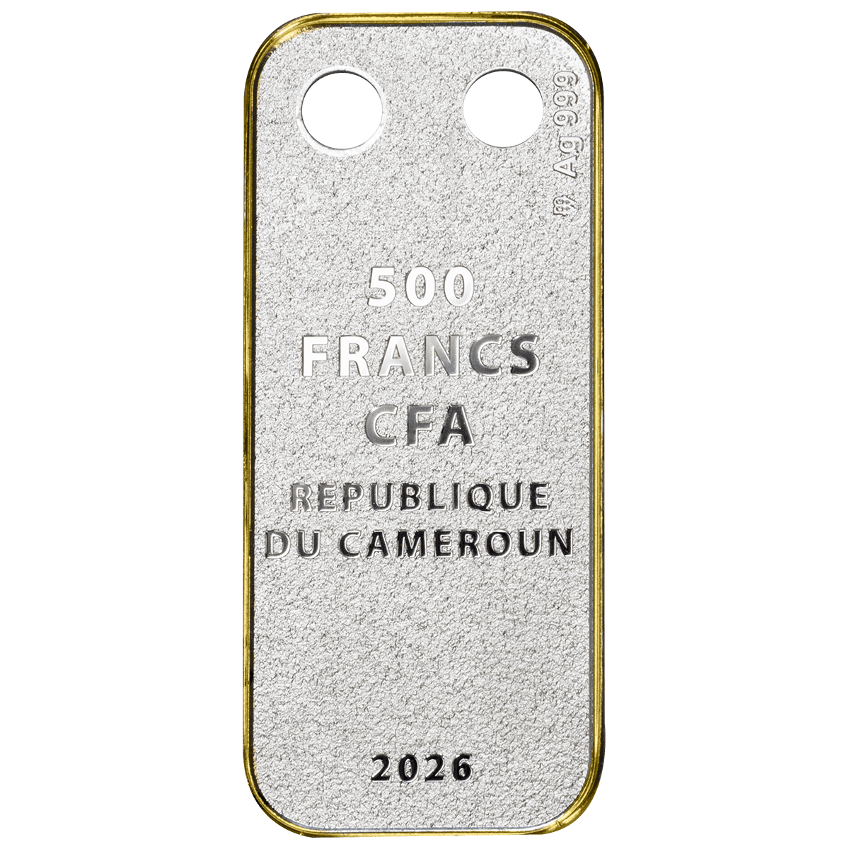 The reverse presents the horse as a gilded chess knight. This symbol reflects intellect, foresight, and strategic thinking. By pairing the zodiac animal with the wisdom of the chessboard, the design speaks to both energy and intelligence. Therefore, the pendant is more than decorative—it carries meaning and purpose. On the obverse, the coat of arms of Cameroon confirms the coin’s 500 CFA francs denomination and legal tender status.