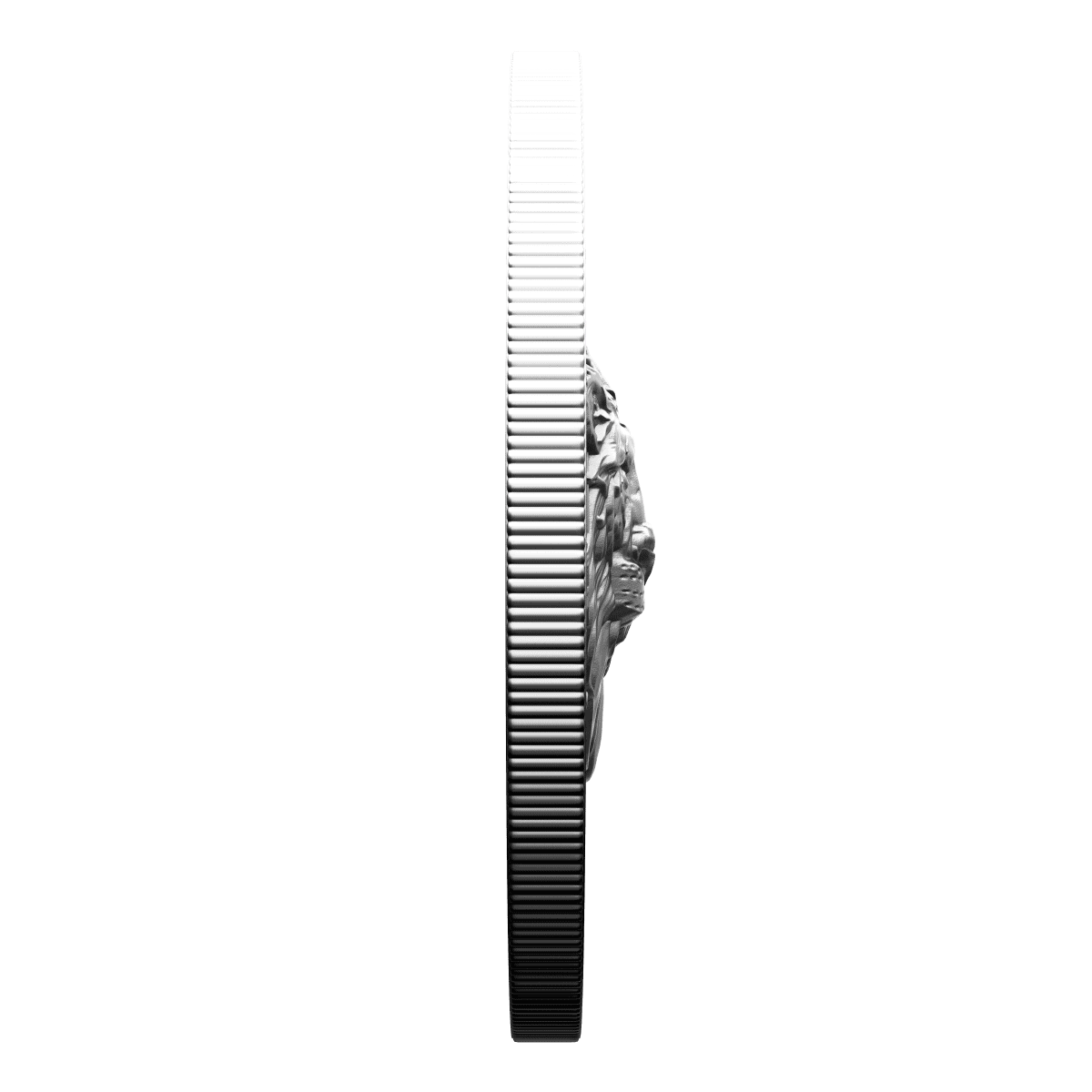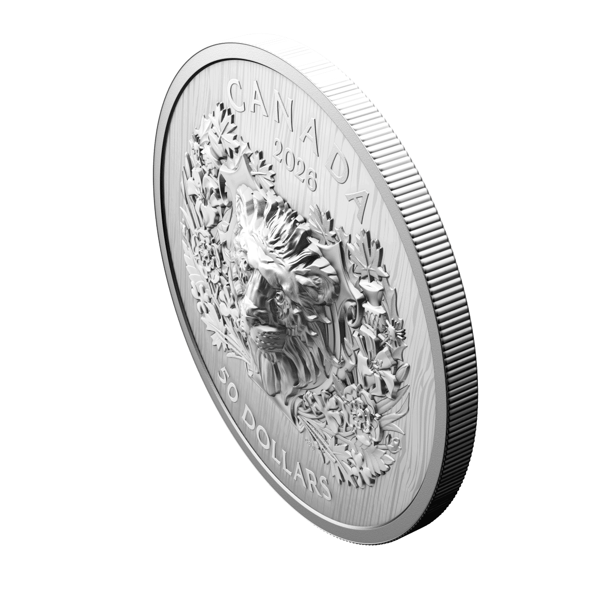 Containing 68 grams of 99.99% pure silver, the coin pushes the limits of modern minting. Its 50 mm diameter gives artists space to highlight fine detail. The lion rises in Extraordinarily High Relief (EHR) to a peak of 4.3 mm, creating a lifelike presence. Surrounding it, a wreath of floral emblems appears in Ultra High Relief (UHR). Moreover, the addition of a woodgrain background adds texture and contrast. As a result, the design blends traditional heraldry with striking modern depth.
