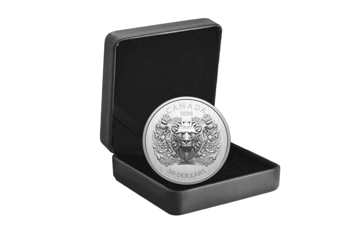 The 2026 Canada Heraldic Lion 68 g Silver Extraordinarily High Relief Proof Coin honors one of the most important figures in Canadian heraldry. Lions do not roam Canada’s forests, yet the beast appears on the nation’s Coat of Arms. It represents courage, strength, and sovereignty while also reflecting historic ties to the United Kingdom. This release from the Royal Canadian Mint reimagines the heraldic lion in a bold and highly stylized form.
