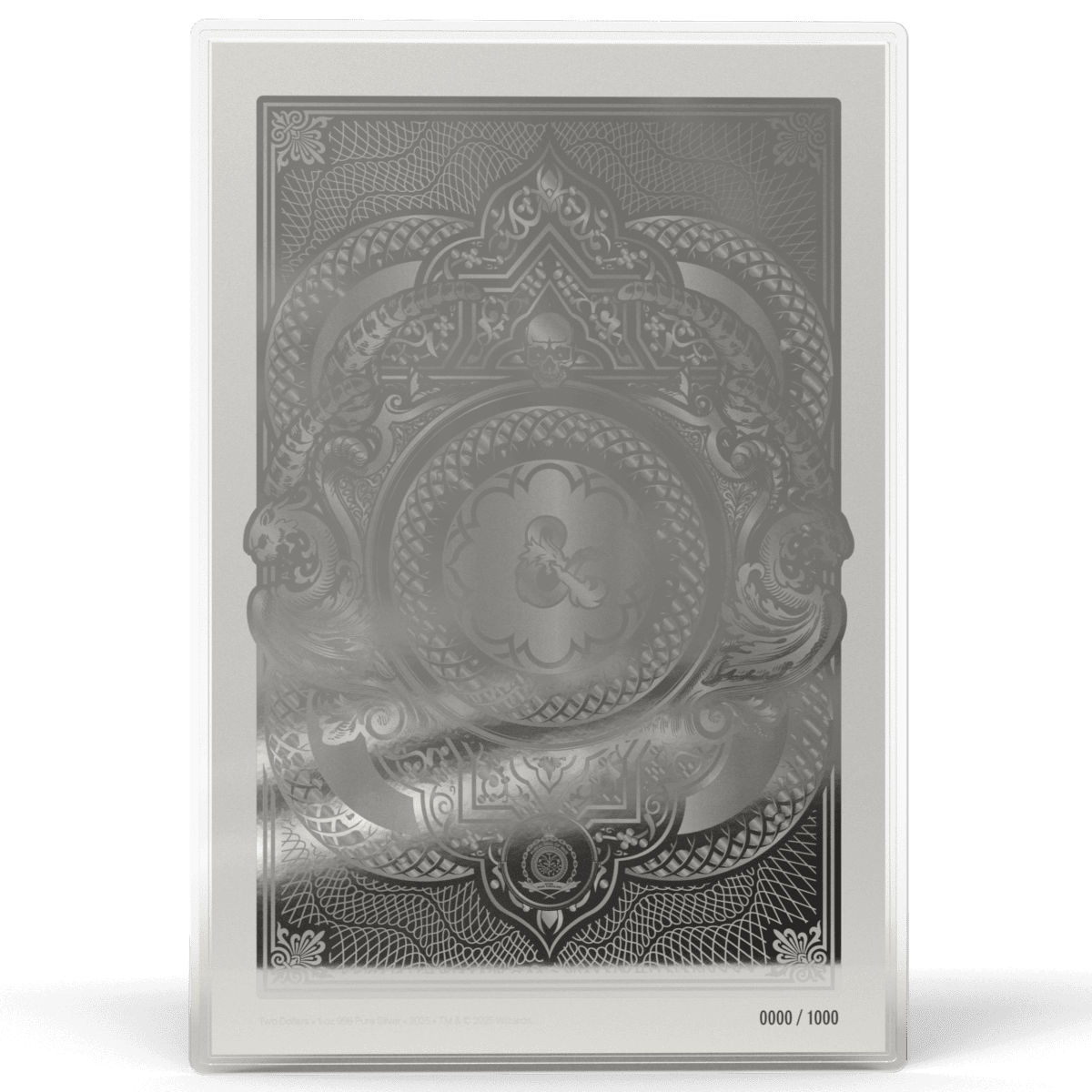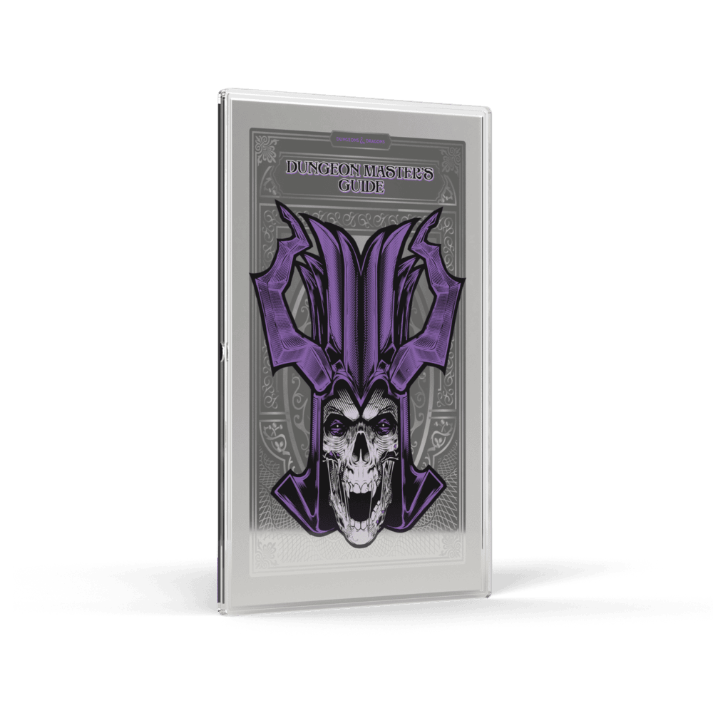 Struck in 1 oz of .999 pure silver, this foil features a proof finish with vivid colour accents. The design highlights the menacing Acererak, the undead archvillain from the Tomb of Horrors. His purple-toned image stands out against detailed silver engraving, creating depth and dramatic contrast.