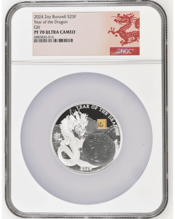 2024 Burundi Lunar Year of the Dragon 2oz Silver w/Jadestone NGC PF 70 UCAM